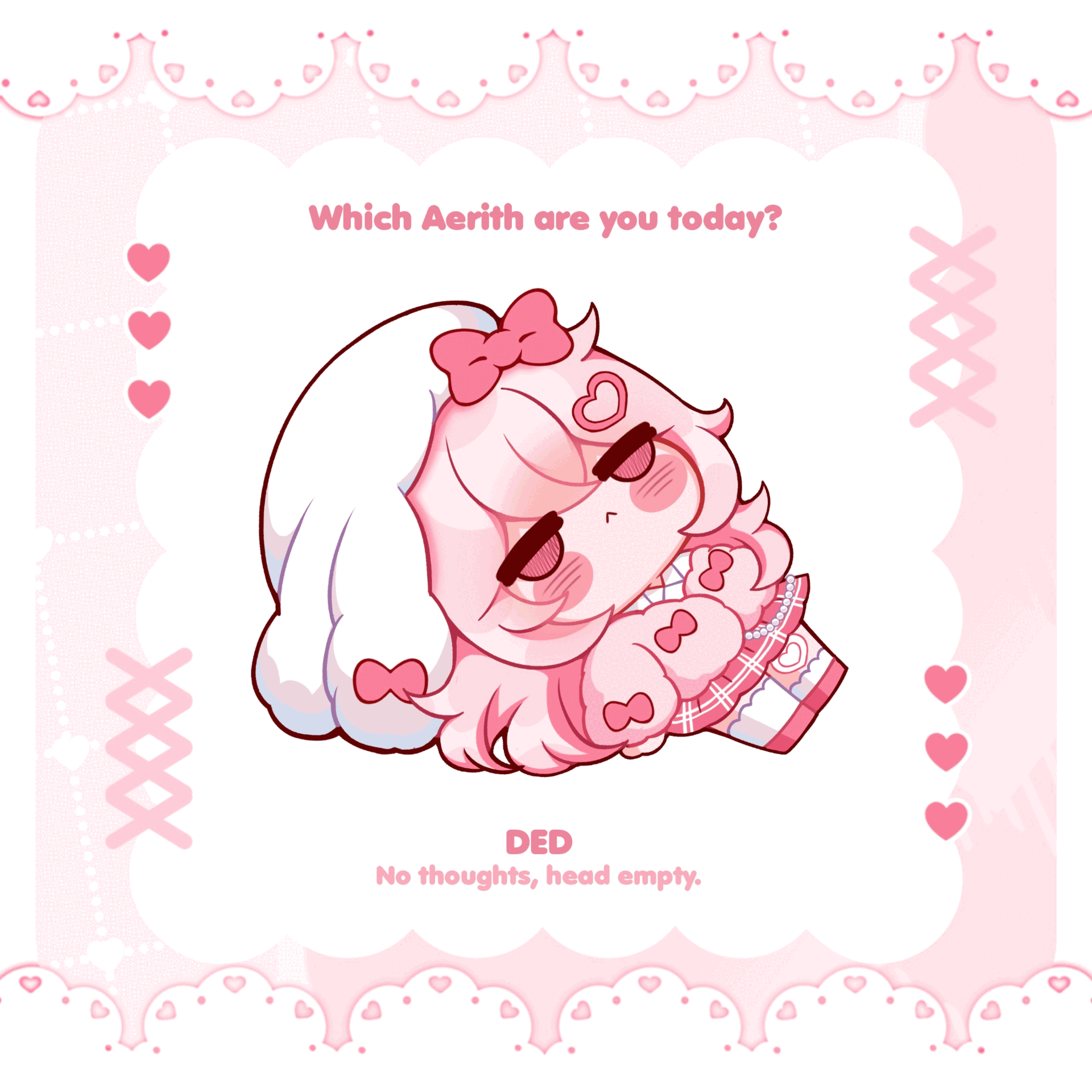 A fun interactive way to get audiences to interact with my exhibition booth. By screenshotting and posting which Aerith they got from the GIF, they're able to get a free pack of Aerith stickers.